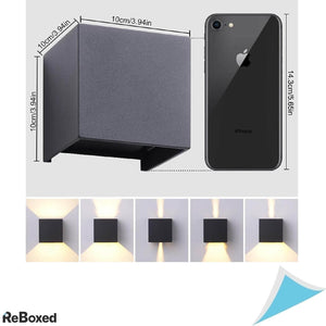 Aplica LED de exterior de 12W cu unghi reglabil de lumina (pana la 180° sus-jos). Carcasa din aluminiu rezistent, protectie IP65 impotriva apei si prafului. Lumina calda 3000K, ideala pentru terase, gradini, scari sau fatade. Durata de viata de pana la 50.000 ore. Design modern, compact (10 x 10 x 10 cm). Potrivita pentru interior si exterior.