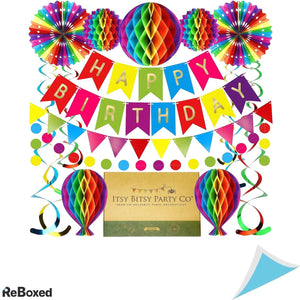 Adauga un strop de magie si culoare oricarei petreceri cu acest set complet de decoratiuni reutilizabile de la Itsy Bitsy Party Co. Creat in Marea Britanie cu atentie la detalii si sustenabilitate, acest pachet vibrant include tot ce ai nevoie pentru a transforma orice spatiu intr-un decor festiv spectaculos – de la bannere personalizabile si ghirlande pana la decoratiuni 3D tip fagure.