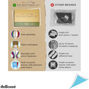 Multifunctional: Bannerul poate fi personalizat cu litere incluse pentru a se potrivi mai multor ocazii – "Happy Birthday", "Party Day", "Happy Easter", "Happy New Year", etc.