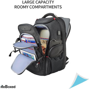 MATERIAL DURABIL: Acest rucsac elegant pentru laptop este fabricat din material balistic de inalta calitate, rezistent la apa. Dimensiuni: 47.24 x 34.29 x 27.43 cm, compatibil cu laptopuri de pana la 17.3". Greutate: 1.4 kg.