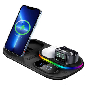 Statia de incarcare fara fir 3 in 1 este compatibila cu iPhone,sau alte telefoane compatibile Qi, AirPods 2/Pro si Apple Watch Series SE/6/5/4/3/2. Nu numai ca accepta incarcarea fara fir, ci si incarcarea cu cabluri de incarcare. Cu acest incarcator fara fir incorporat, nu mai aveti nevoie de tot felul de cabluri de incarcare dezordonate.