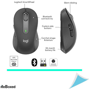 Logitech Signature M650 L este un mouse wireless ergonomic, proiectat pentru maini mari, care ofera confort pe tot parcursul zilei si performanta fiabila pentru PC, Mac, Chromebook sau alte dispozitive compatibile. Cu butone laterale personalizabile, click-uri silentioase si o autonomie extinsa a bateriei de pana la 2 ani, acest mouse este ideal pentru utilizare la birou, acasa sau in mobilitate. Conectivitatea se poate realiza prin Bluetooth sau prin receptor USB Logitech Unifying, oferind flexibilitate si o experienta fara fire.