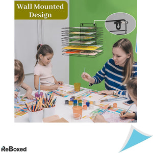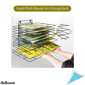 Suport pentru uscare a lucrarilor artistice, ideal pentru clase de arta, studiouri sau spatii creative. Dispune de 12 rafturi detasabile, spatiu suficient pentru picturi, colaje sau opere grafice. Montabil pe perete, economiseste spatiu si organizeaza lucrarile uscate eficient.