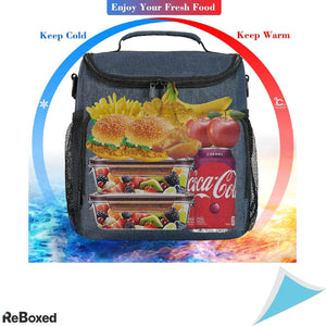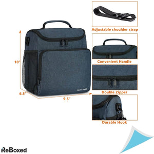 Capacitate mare si compartimente multiple - aceasta geanta de pranz are un compartiment principal cu fermoar pentru alimente si bauturi calde sau reci, un buzunar frontal pentru chei si carduri si un buzunar din plasa pentru o sticla de apa.