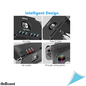 Are un sistem sigur de fixare cu banda velcro (hook & loop) care protejeaza consola de zgarieturi sau alunecari, si include orificii pentru racire si incarcare prin USB-C, astfel incat sa poti folosi dispozitivul pe perioade lungi fara intrerupere.