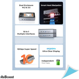Docking station-ul ORICO D35M2 este un dispozitiv avansat de expansiune conceput pentru a imbunatati conectivitatea laptopurilor si al statiilor desktop, dar si a altor gadgeturi. Cu tehnologii de ultima generatie, acest docking station este ideal pentru profesionisti si utilizatori care doresc o solutie eficienta pentru conectarea mai multor periferice dar care sa dispuna si de posibilitatea de stocare.