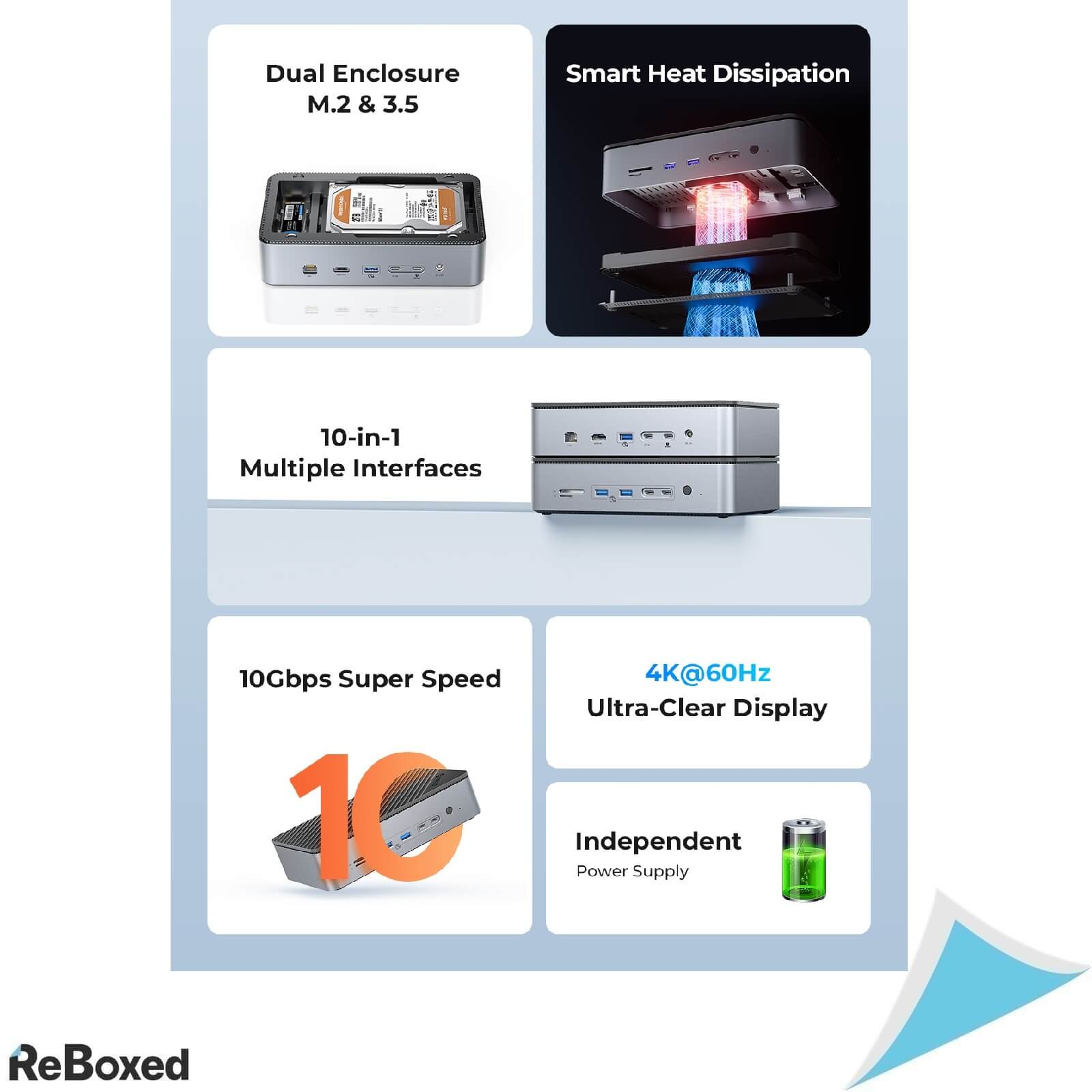 Dimensiuni & Design: Compactsi portabil, docking station-ul se integreaza usorin configurația biroului sau calatoriilor de afaceri. Designul modernii confera un aspect elegant.