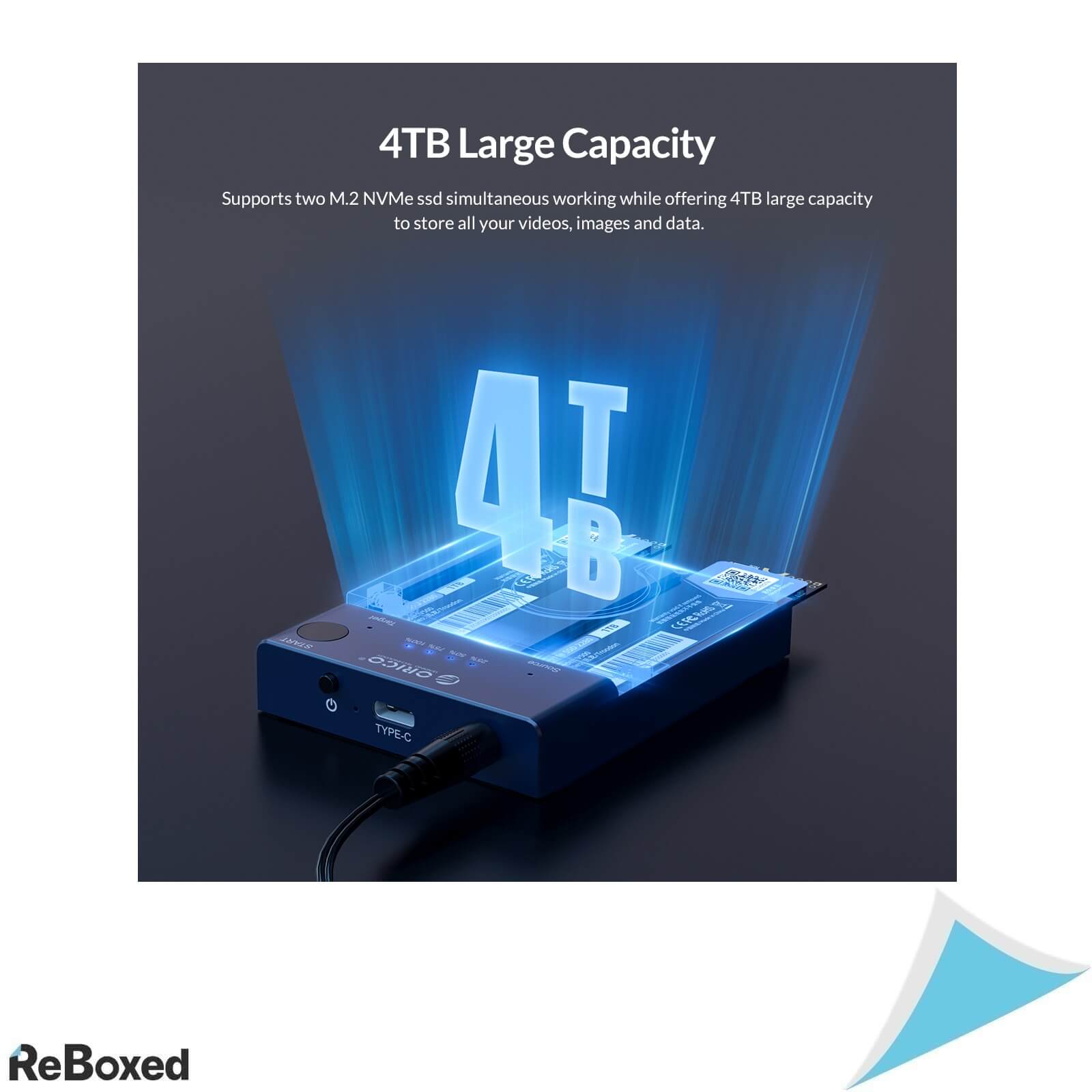 ORICO M2P2-C3-C este o statie avansata de clonare, pentru 2 SSD-uri M.2 (suporta SSD-uri de tip M.2 22110/2280/2260/2242) cu o capacitate maxima de 2TB, clonare care se poate realiza si offline (fara legatura cu un calculator). Dispune de legatura PC printr-un port USB-C de mare viteza. Dispune de sursa de alimentare proprie, 5V/4A, adecvata pentru alimentarea SSD-urilor.