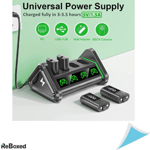Spune adio bateriilor de unica folosinta cu setul OIVO, format din 4 baterii reincarcabile de 3840mWh si o statie de incarcare compatibila cu toate gamepadurile Xbox Series X|S si Xbox One (inclusiv S/X/Elite). Fiabile, sigure si durabile, aceste baterii sunt solutia ideala pentru sesiuni de gaming fara intreruperi.