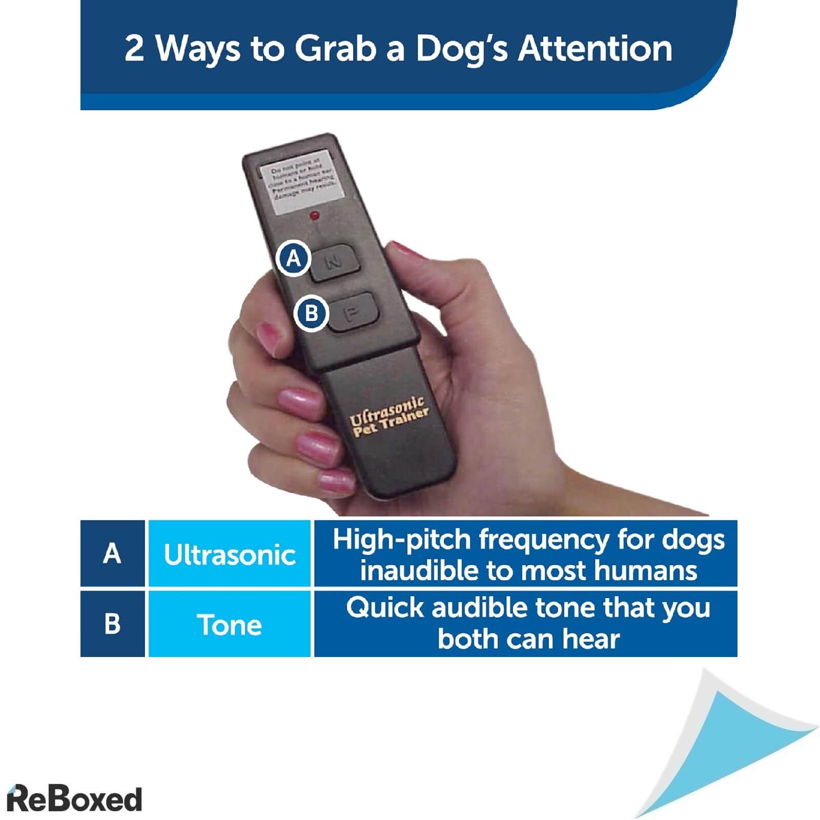 Tone pozitive si negative: poti corecta comportamentele nedorite sau recompensa comportamentele bune prin ton audible sau ultrasonic (buton dublu).