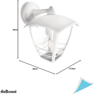 Adauga eleganta si functionalitate spatiului tau exterior cu aplica Philips Mygarden Creek. Cu un design clasic tip lantern si finisaj alb, aceasta lampa de perete aduce un plus de stil gradinii sau terasei tale, oferind in acelasi timp iluminare eficienta. Compatibila cu becuri E27 de pana la 60W, este ideala pentru crearea unei atmosfere placute in aer liber.