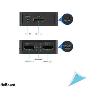 Splitter HDMI 1x2 : splitterul HDMI 1x2 împarte un semnal de intrare HDMI în două iesiri, cele două semnale de ieșire HDMI sunt sincronizate.