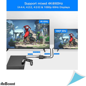 Vă rugăm să utilizați cabluri HDMI 2.0 calitative, pentru a obține 4K@60Hz 4:4:4/HDR10/Dolby Vision. Distanța de transmisie / lungimea cablurilor : până la 5m de intrare și 5m de ieșire.