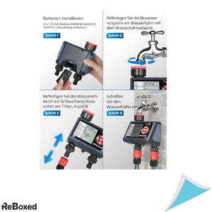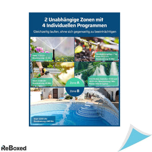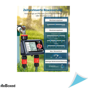 Automatizeaza-ti sistemul de irigare cu usurinta si eficienta cu programatorul DEWENWILS, echipat cu 2 iesiri controlabile individual. Perfect pentru gradini, peluze sau sere, acest dispozitiv iti permite sa setezi pana la 4 programe de udare pe zi pentru fiecare iesire, fara ca acestea sa se influenteze reciproc.