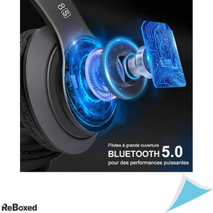 Casti Bluetooth Over-Ear Prtukyt 8S cu driver stereo de 57mm, bas profund, microfon incorporat, 6 moduri EQ, design pliabil, autonomie pana la 50h, conexiune wireless si prin cablu, compatibile cu telefon, TV, PC, iPad, etc.