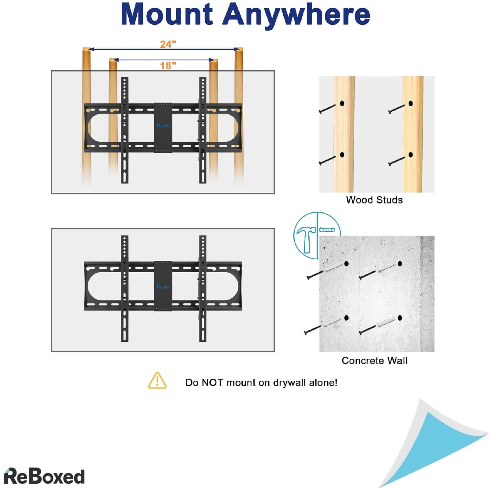 Suportul de perete Rentliv pentru televizor este o solutie sigura si versatila pentru montarea pe perete a majoritatii televizoarelor cu diagonala intre 37 si 70 inch. Este construit din otel rezistent si poate sustine pana la 60 kg (132 lbs), oferind o fixare stabila si durabila. Suportul permite inclinarea ecranului pentru a reduce reflexiile si pentru a obtine un unghi de vizionare confortabil. Este compatibil cu o gama larga de modele TV datorita standardului VESA de pana la 600x400 mm si este potrivit pentru montarea pe pereti cu distantare intre montanti de 16", 18" sau 24".