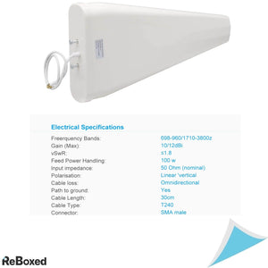 Imbunatatirea Semnalului: Cu un castig de pana la 11dBi, aceasta antena directionala de latime mare este compatibila cu operatorii din SUA si UE si suporta multiple dispozitive. Este ideala pentru imbunatatirea semnalelor 2G, 3G, 4G si 5G LTE, asigurand o conexiune stabila si de inalta calitate.