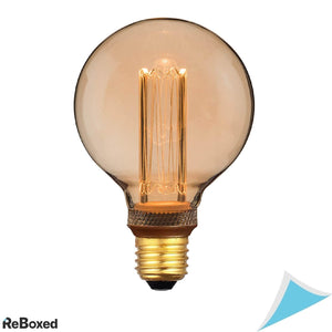 Această lampă LED vintage E27 G95 construita cu o tehnologie patentată unică, produce efectul uimitor de lumina, datorită suportului din plexiglas, taiat cu laserul si care reflectă lumina. Se obtine astfel un efect identic cu cel realizat cu primele lampi istorice cu filament. Aceste bec-uri led, NU sunt dimabile.