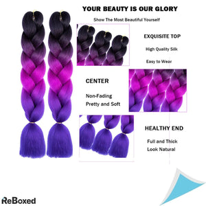 Pachet cu 6 extensii de par impletit cu 3 tonuri de culoare ombre dark purple, rezistent la caldura, neted si moale, frumos si durabil, fara decolorare, fara miros, impletit si rasucit, nu dauneaza pielii si confortabil de purtat. Fibra sintetica de inalta calitate, rezistenta la caldura. Restilizarea se realizeaza intr-o apa de 80-100 de grade Celsius.