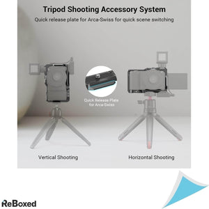 Pentru configuratii de vlogging, cusca este echipata cu saboti reci atat in partea superioara, cat si in partea inferioara, ideali pentru atasarea unui microfon sau a unei lampi LED.