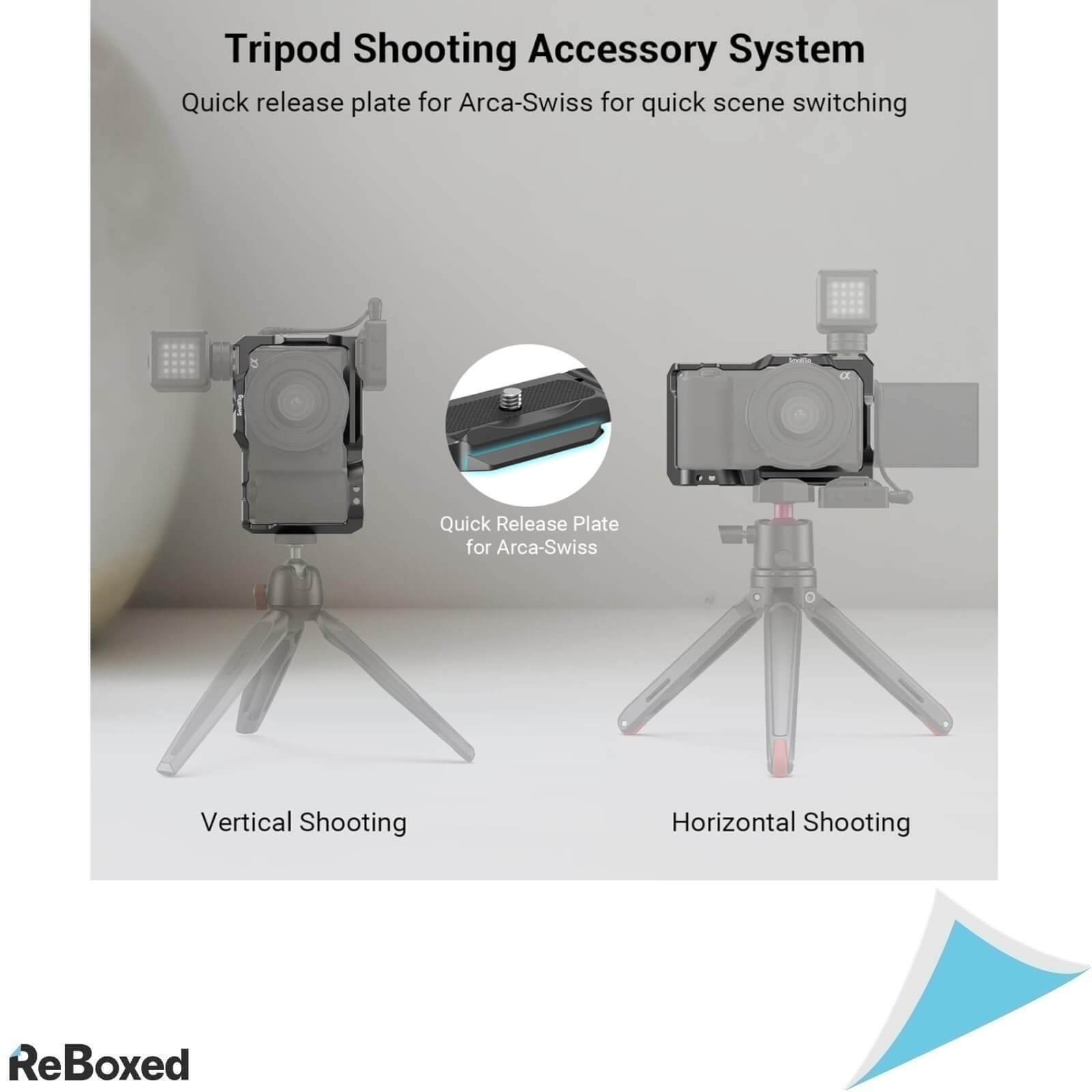 Baza cuscii include o placa de eliberare rapida compatibila Arca, care permite atasarea directa pe trepiede de tip Arca si comutarea rapida intre filmarea din mana, pe trepied sau pe stabilizator. De asemenea, filetele din partea inferioara sunt compatibile cu placile de eliberare rapida DJI RS 2 / RSC 2 (partea superioara), imbunatatind semnificativ experienta de utilizare cu gimbalul.