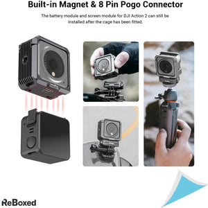 Cage-ul SmallRig pentru DJI Action 2 3711 este conceput pentru protectia camerei, disiparea rapida a caldurii si montarea accesoriilor. Fabricat cu un material de grafena inovator in interior, cage-ul transfera rapid caldura generata de camera Action 2, permitand sesiuni de filmare mai lungi fara supraincalzire.