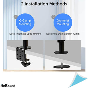 Două opțiuni de instalare: clema în C și baza opțională cu inele (se potrivește la birou cu o grosime de până la 10 cm), economisesc spațiu prețios pe birou.