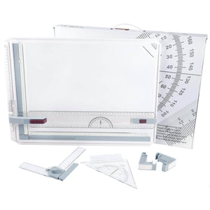 Rigle integrate: Include rigle paralele si gradate care se pot deplasa usor pe suprafata plansetei, facilitand desenul liniilor drepte si masurarea exacta a unghiurilor si dimensiunilor.