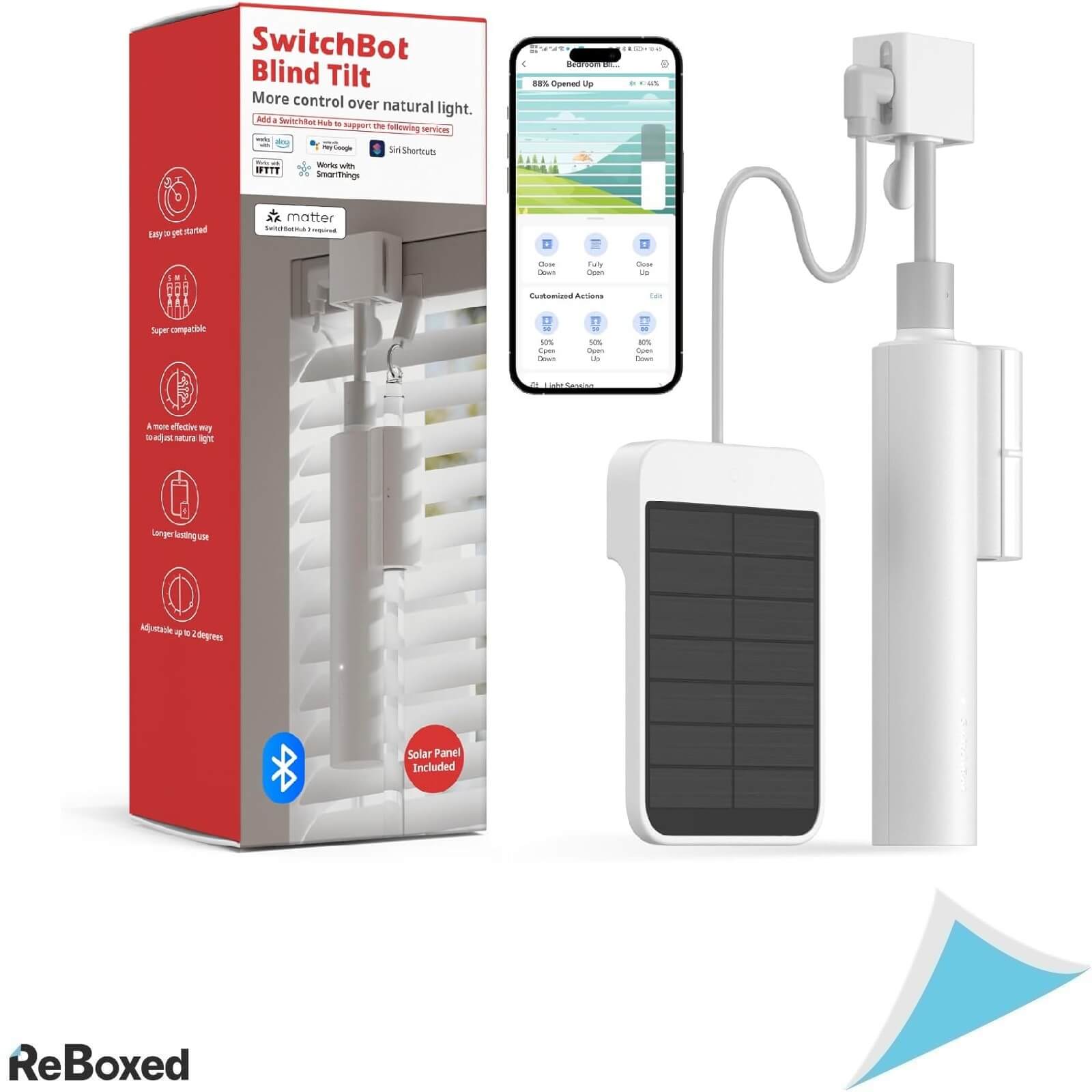 Transforma-ti jaluzelele obisnuite in jaluzele inteligente cu SwitchBot Blind Tilt, dispozitivul motorizat care permite controlul automat al jaluzelelor tale. Cu alimentare solara si senzori de lumina integrati, sistemul ajusteaza automat unghiul lamelor in functie de luminozitatea din incapere. Adaugand SwitchBot Hub Mini, poti controla jaluzelele prin voce folosind Alexa, Google Home sau Siri, ori de la distanta prin aplicatia SwitchBot. Ideal pentru case moderne, birouri si spatii inteligente.