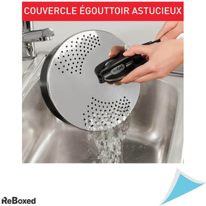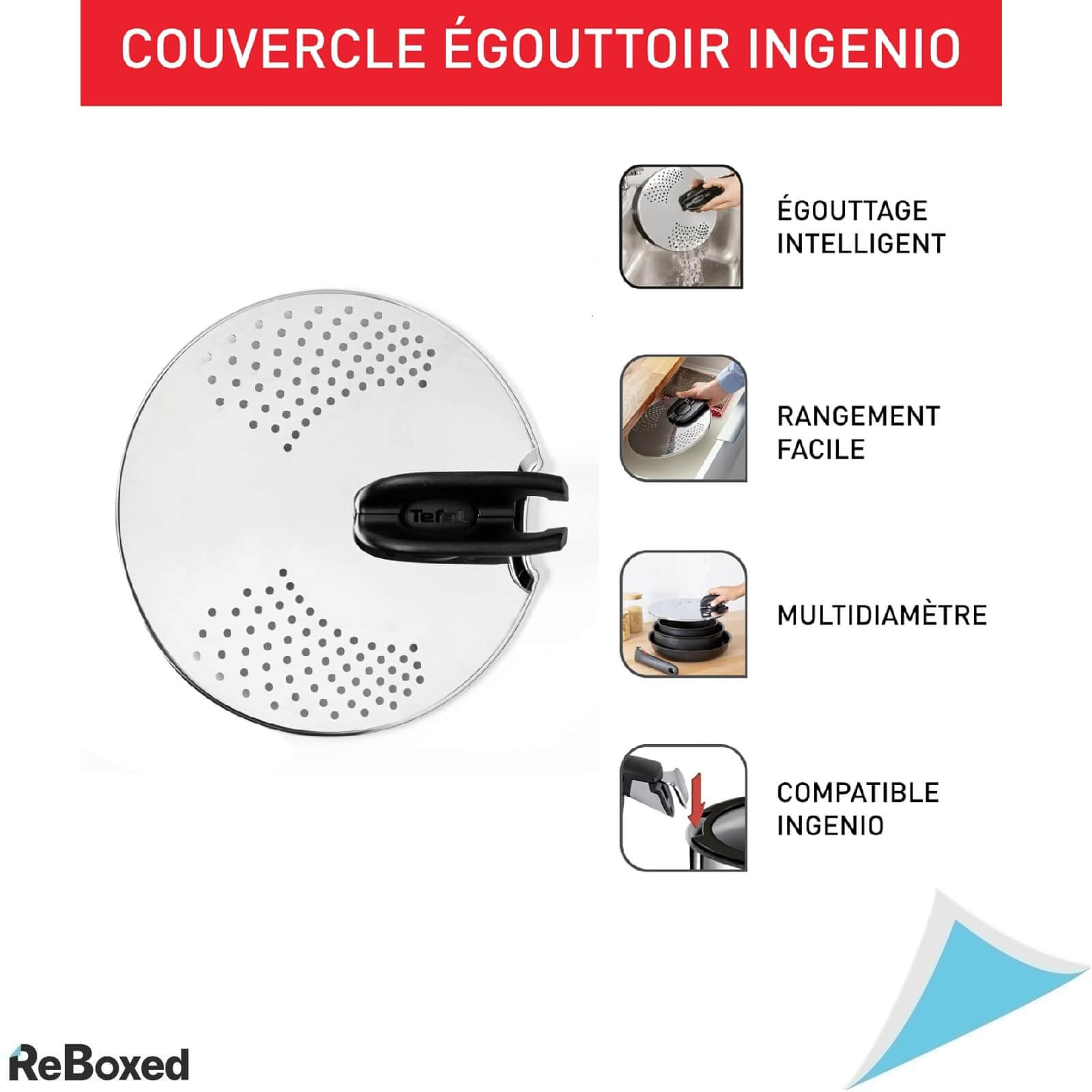 Tefal Ingenio L9829402 este un capac pentru scurgere vase din otel inoxidabil, conceput pentru a se potrivi tigailor si cratitelor Ingenio cu diametre intre 14 si 20 cm. Acest accesoriu faciliteaza scurgerea rapida a apei dupa spalare si permite depozitarea usoara a vaselor, economisind spatiu in bucatarie. Materialele de calitate, otel inoxidabil si plastic durabil, garanteaza durabilitate si usurinta in utilizare.