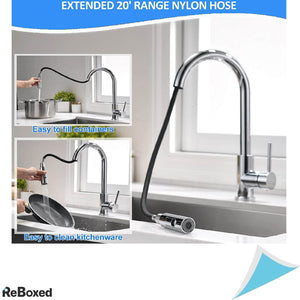 Baterie eleganta de bucatarie, se recomanda a fi folosita in spatiile cu activitate intensa si poate deservi cu succes doua chiuvete alaturate sau o chiuveta dubla. Dispune de o raza de actiune gigant, de 550mm