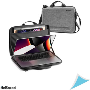 Geanta este compatibila cu noile modele MacBook Pro 16-inch (M3, M2, M1 Pro/Max) din 2019 pana in 2024 (A2991, A2780, A2485, A2141). Fabricata din materiale dure (EVA) , ofera protectie excelenta impotriva socurilor si zgarieturilor. Geanta are un compartiment organizat pentru tablete de pana la 12.9 inch, inclusiv iPad Pro, si buzunare suplimentare pentru accesorii. Cureaua de umar ajustabila si designul compact asigura confort si portabilitate pentru uz zilnic sau calatorii.