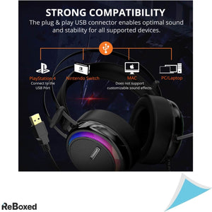 Conectorul USB plug & play permite un sunet si stabilitate optime pentru toate dispozitivele acceptate: Nintendo Switch / PlayStation 4 (PS4) / MacBook, iMac / Windows PC / Laptop.