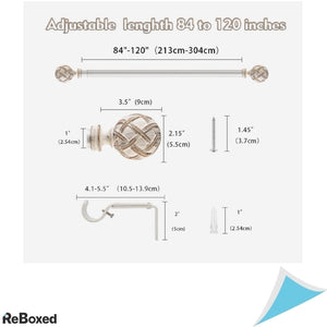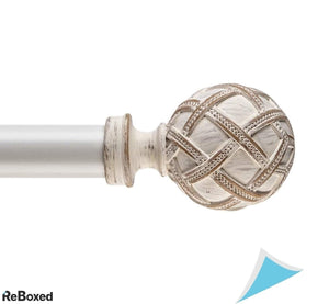 Tija de perdea din fier, cu lungime reglabila ( 213 - 304 cm), avand capete din polirasina cu finisaj bila alb-maro deschis. Design si aspect deosebit. Diametrul tijei de 2,5 cm este pentru utilizare cu perdele ușoare pana la medii. Excelent pentru dormitoare vesele sau camere de joaca pentru copii.