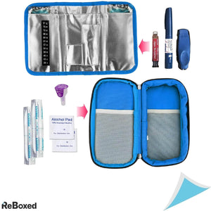 YOUSHARES Insulin Cooler Travel Case este o geanta portabila izolata, special conceputa pentru a mentine insulina si alte medicamente in siguranta si racite. Include doua pachete de gheata pentru racire prelungita, fiind ideala pentru calatorii. Geanta compacta si bine organizata asigura suficient spatiu pentru proviziile esentiale pentru diabetici, oferind protectie termica pentru o pastrare eficienta a medicamentelor. Disponibila in culoarea albastra, este practica si usor de transportat pentru cei care necesita racire constanta a medicamentelor.