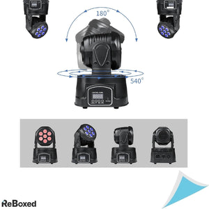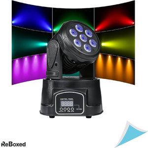 Proiectorul ZKYMZL 7x12W LED RGBW (4 in 1) este solutia ideala pentru iluminarea profesionala a evenimentelor. Cu 7 LED-uri de 12W fiecare si mixare de culori RGBW, ofera o gama larga de efecte luminoase vibrante. Controlabila prin DMX512 pe 9 sau 14 canale, permite integrarea usoara in sisteme de iluminat complexe. Modurile de operare includ Master-Slave, activare pe sunet si mod automat, oferind flexibilitate in utilizare. Ideala pentru DJ, petreceri, nunti, cluburi si evenimente live, aceasta lampa adauga un plus de energie si atmosfera oricarui eveniment.