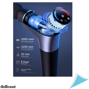 🔋 Baterie de lungă durată : pistolul de masaj rezistă pana la 4 ore, cu o singură încărcare, datorită bateriei Li-ion de 2.000 mAh. Se oprește automat după 15 secunde în standby, pentru a economisi energie.