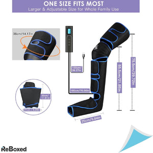 Masajul picioarelor se potrivește tuturor : aparatul de masaj pentru picioare are închideri Velcro, este confortabil și stabil. Drenajul de calibru mare este reglabil. Circumferința maximă a piciorului este de 36 cm, circumferința maximă a gambei 55.5 cm și circumferința maximă a coapsei este de 75.5 cm.