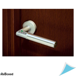 Incuietoarea este orientata spre stanga si este foarte usor de utilizat. Manerele au un design desavarsit, sunt fabricate din otel inoxidabil durabil, avand culoarea : argintiu mat. Incuietoarea inteligenta se poate folosi la usile casei, camerelor, birourilor, la usi cu grosimea intre 35-80 mm. Manerul (clanta) din afara, declanseaza deschiderea doar dupa introducerea codului corect. Se poate seta un cod Admin (Master), compus din 6 cifre si alte 9 coduri (User) cuprinse intre 4 si 6 cifre.