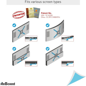 Include un mecanism brevetat pentru a se potrivi atat cu un ecran plat cat si cu unul curbat.