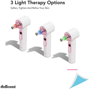 Experimentați un tratament inovator pentru piele, cu ajutorul funcțiilor de microdermabraziune și de eliminare a punctelor negre, cu ajutorul compresiei calde/ reci și a 3 opțiuni de terapie cu lumină.