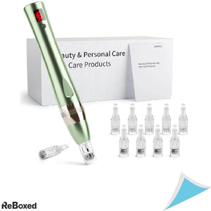 Stiloul cu micro-ace electric verde deschis Beautlinks are 5 setari de viteza cu afisaj LCD.