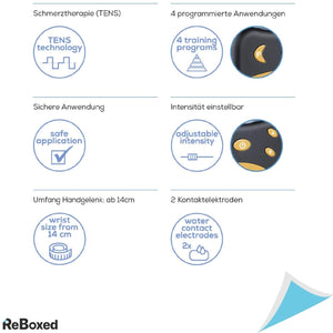 Pentru utilizare in cazul durerilor la nivelul incheieturii mainii precum si al antebratului. Circumferinta mana: incepand cu 14 cm. 4 tipuri de utilizare programate in prealabil