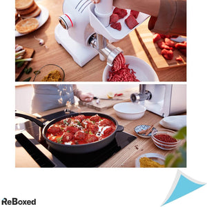 Macinarea rapida si usoara a carnii, a pestelui sau a legumelor brute si fierte. Rezultate excelente chiar si cu cantitati mari de carne, in jur de 1 kg pe minut
