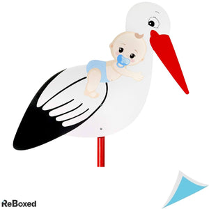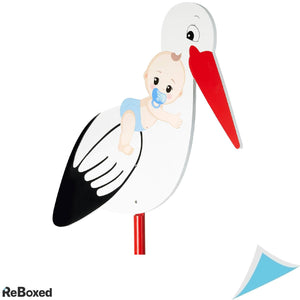 Aceasta figurina barza este un cadou unic si atent pentru a sarbatori nasterea unui baietel. Dimensiunea sa mare si designul vibrant o fac perfecta pentru a adauga un aer festiv la petrecerile pentru bebelusi, anunturi de nastere sau ca piesa decorativa pentru camera copilului.