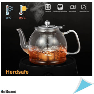 Ceainic 1000ml cu Infuzor si Capac Inox Sticla Borosilicata