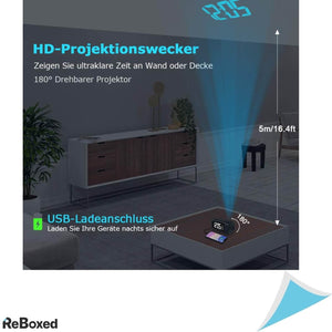Ceasul digital si RadioFM, poate afișa și proiecta ora, extrem de clar, sub un unghi reglabil pana la 180 grade, la 2-3 metri de tavan sau perete. Va treziti si vedeti cu usurinta ora pe perete sau ecran.