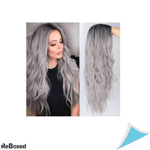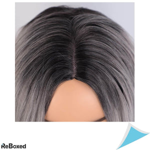 Peruca cu par sintetic, care imita perfect parul uman, se poate folosi la Petreceri, Halloween, Cosplay etc. Culoare Gri deschis cu radacini intunecate.