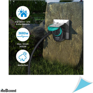 Priza inteligenta ofera o putere mare de comutare de pana la 3680W si protectie impotriva stropilor de apa cu IP44, facand-o ideala pentru utilizarea in gradina, pe balcon sau in alte zone in aer liber.