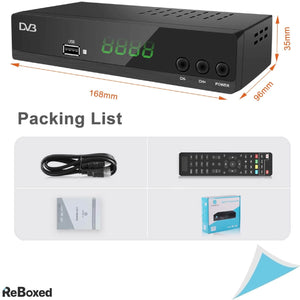 Receptorul digital Full HD 1080P este compatibil cu DVB T2 / DVB-T / HDR10 /HEVC H.265/10 biți și detecteaza MPEG-1, MPEG-2, MPEG-4. Suport antena si ieșire, interfata Coaxial audio.